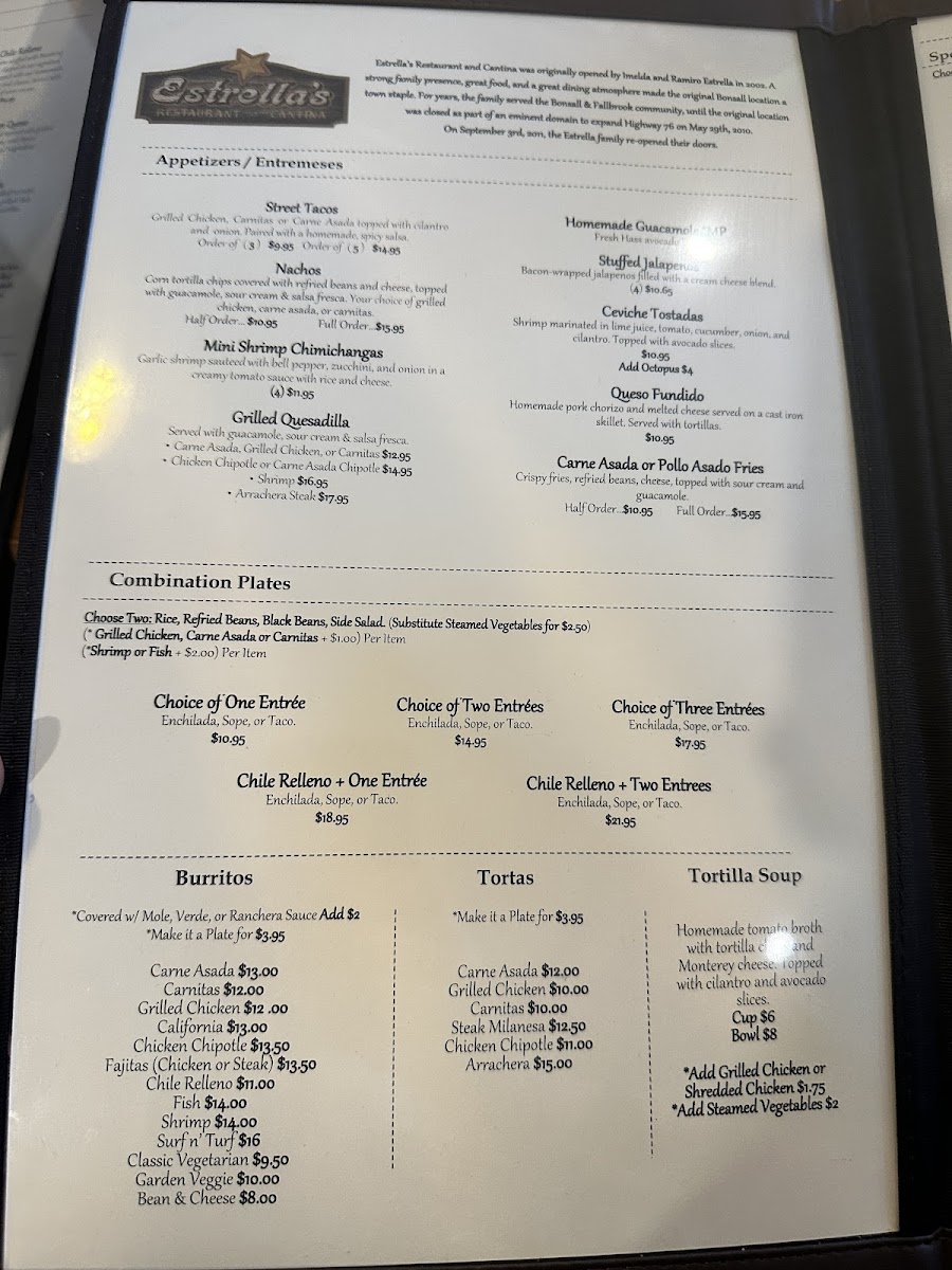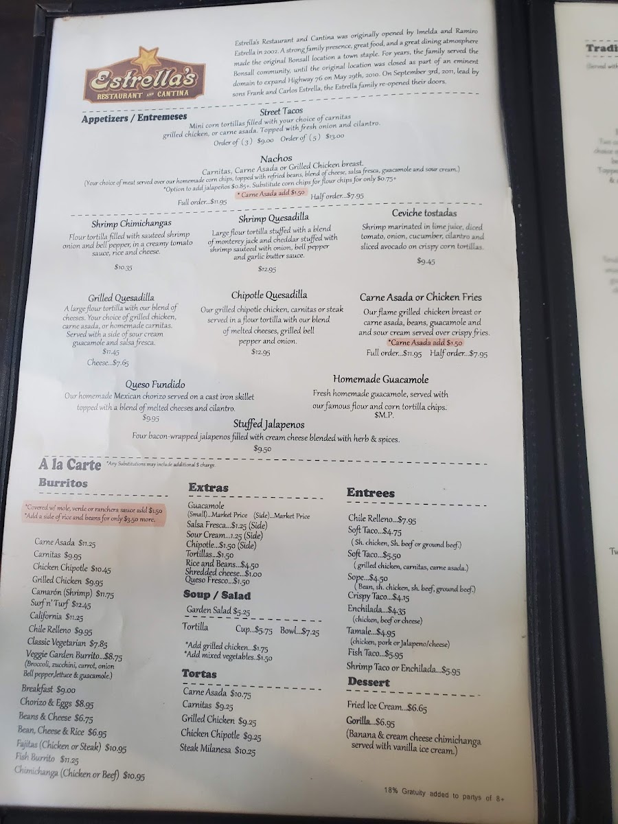 With a cozy ambiance and attentive service, Estrella's promises a memorable dining experience—making it a perfect spot for celebrations or casual family meals.